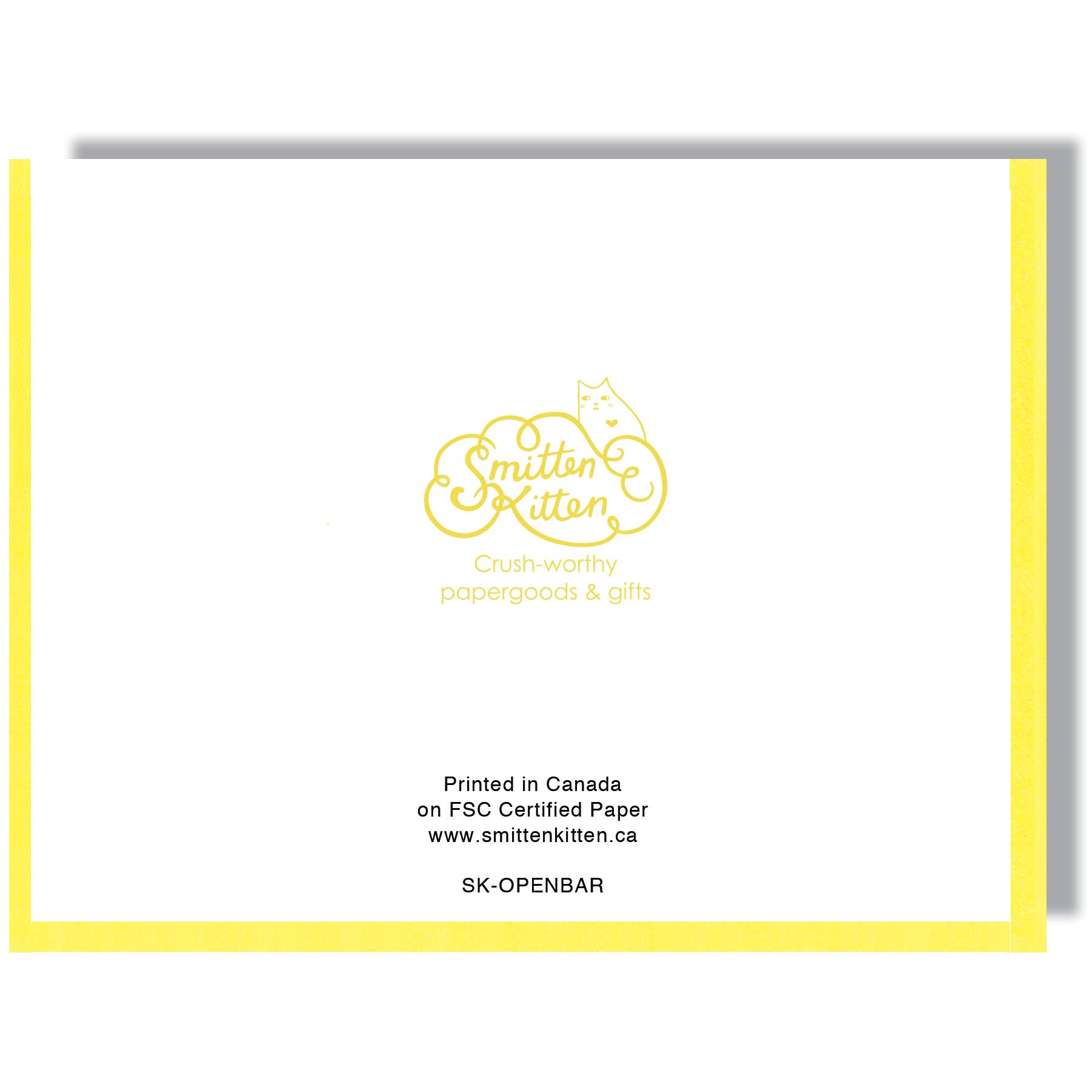A2 (4.25” x 5.5”). Digitally printed with gold foil. Blank inside. Includes yellow Green Seal® Certified envelope and cellophane sleeve.
