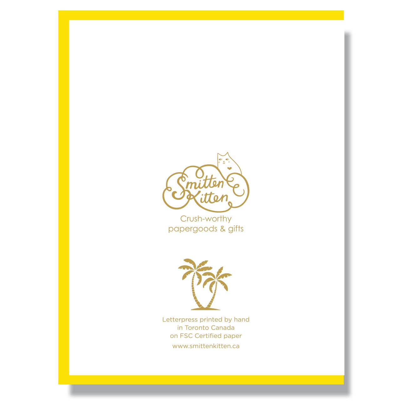 A2 (4.25” x 5.5”). Letterpress printed by hand in our studio. Blank inside. Includes matching Green Seal® Certified envelope and cellophane sleeve.